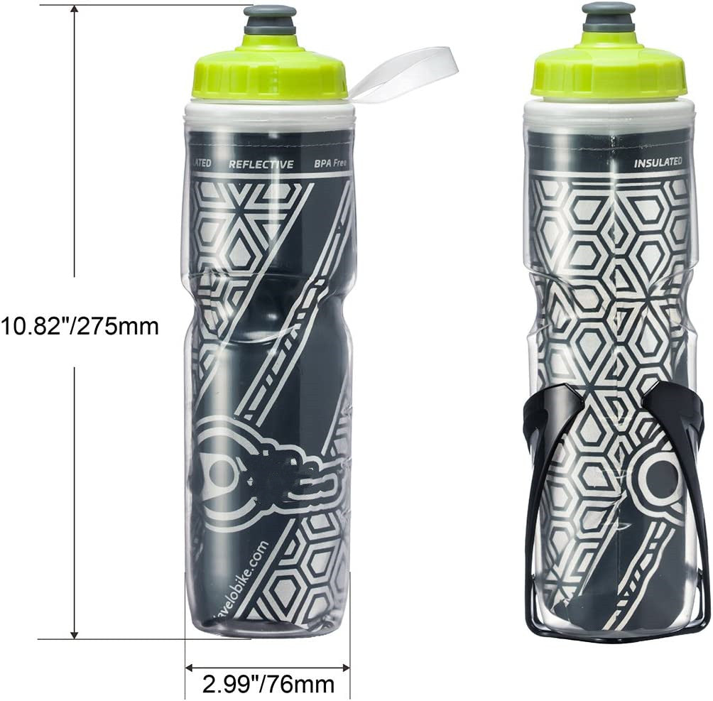 Say goodbye to water bottles that are too small, too flimsy, or hard to mount on your bike. Say hello to ours insulated, reflective and BPA-free bottle that stays in place as you cycle on any surface!